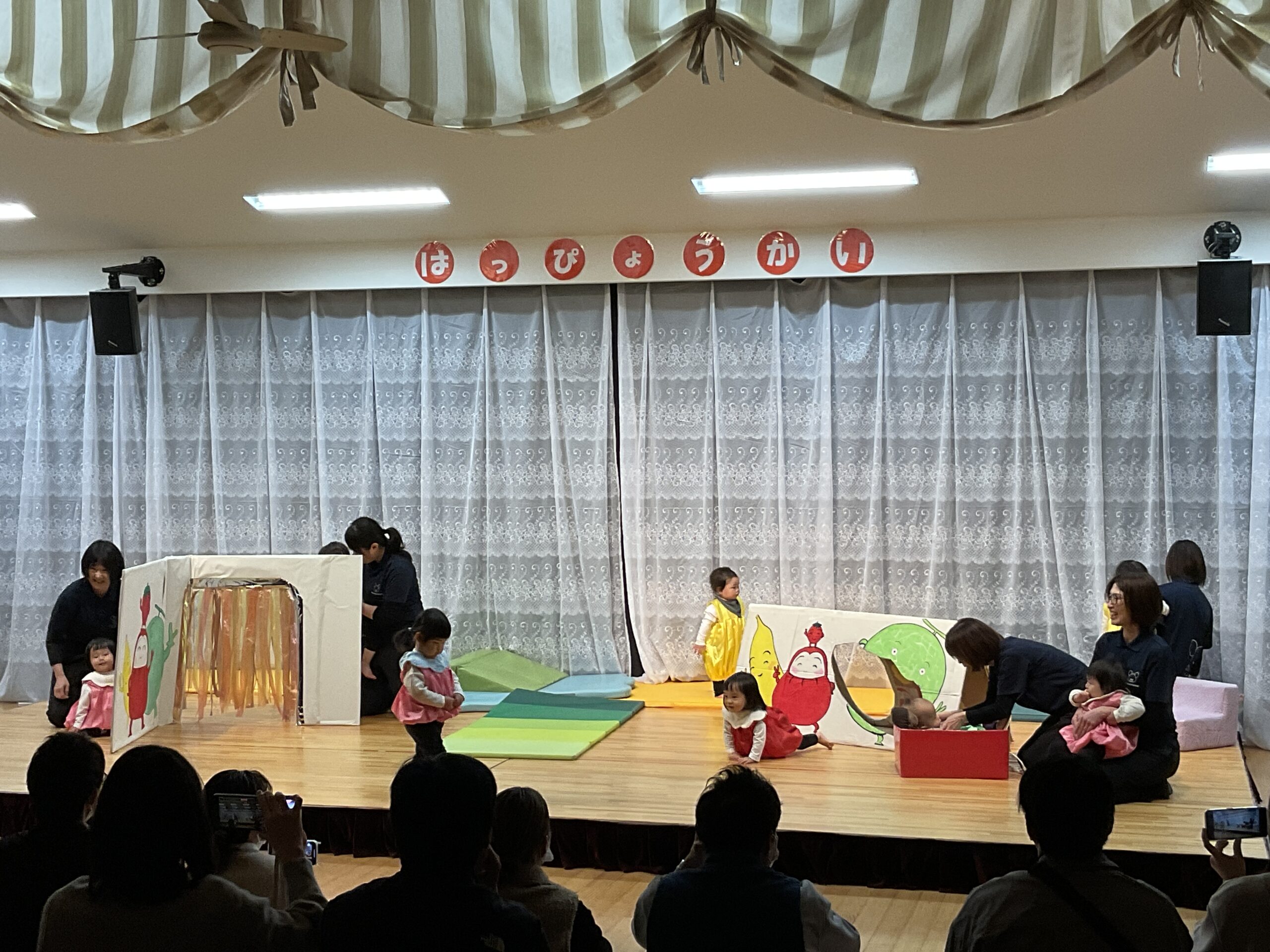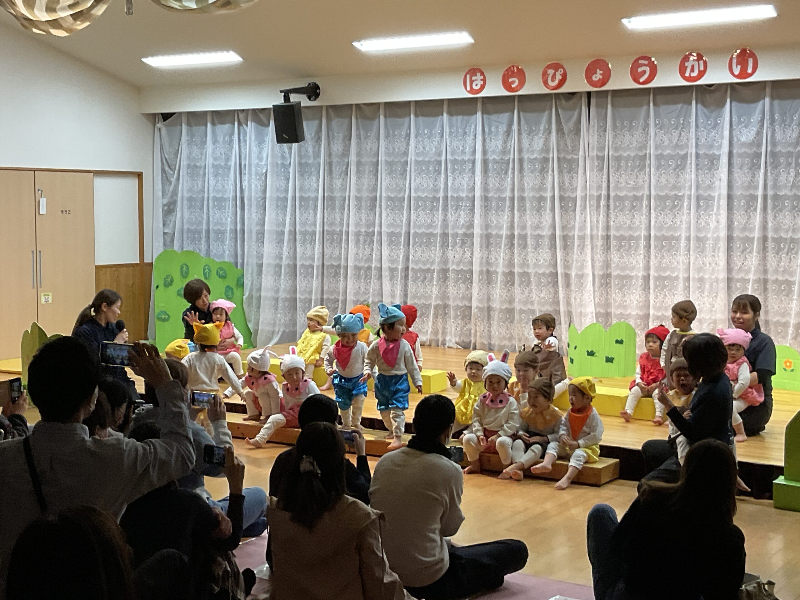 うさぎ組さん(2歳児)は、歌と、劇ごっこをしました。